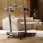 Обновлённая система индикации включает два экрана: светодиодный дисплей в раме и сенсорный дисплей в поручне. На них отображаются ключевые тренировочные параметры: общее количество шагов, пройденная дистанция, угол наклона, время, скорость и расход калорий. Благодаря наглядным показателям проще контролировать нагрузку и отслеживать прогресс.
